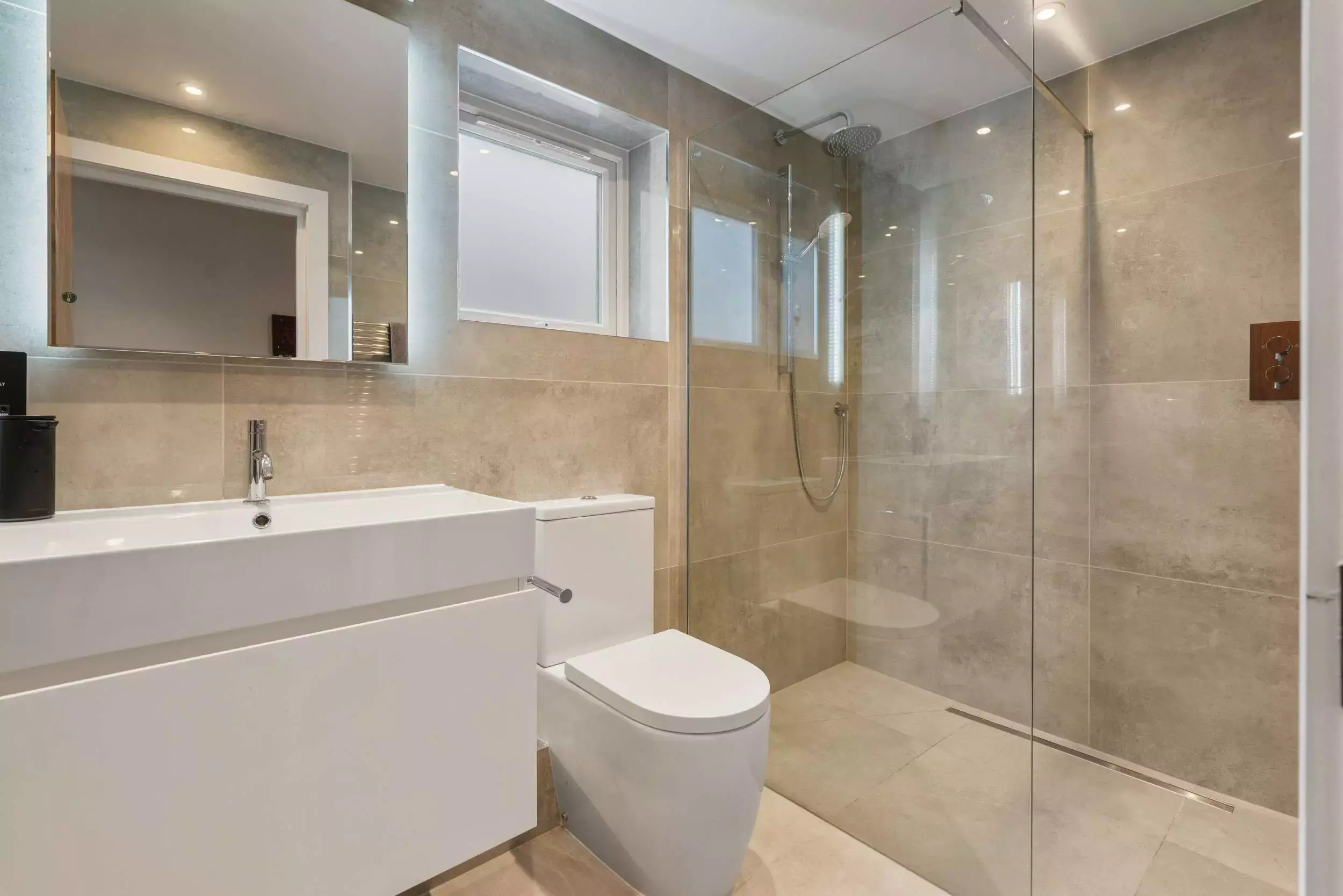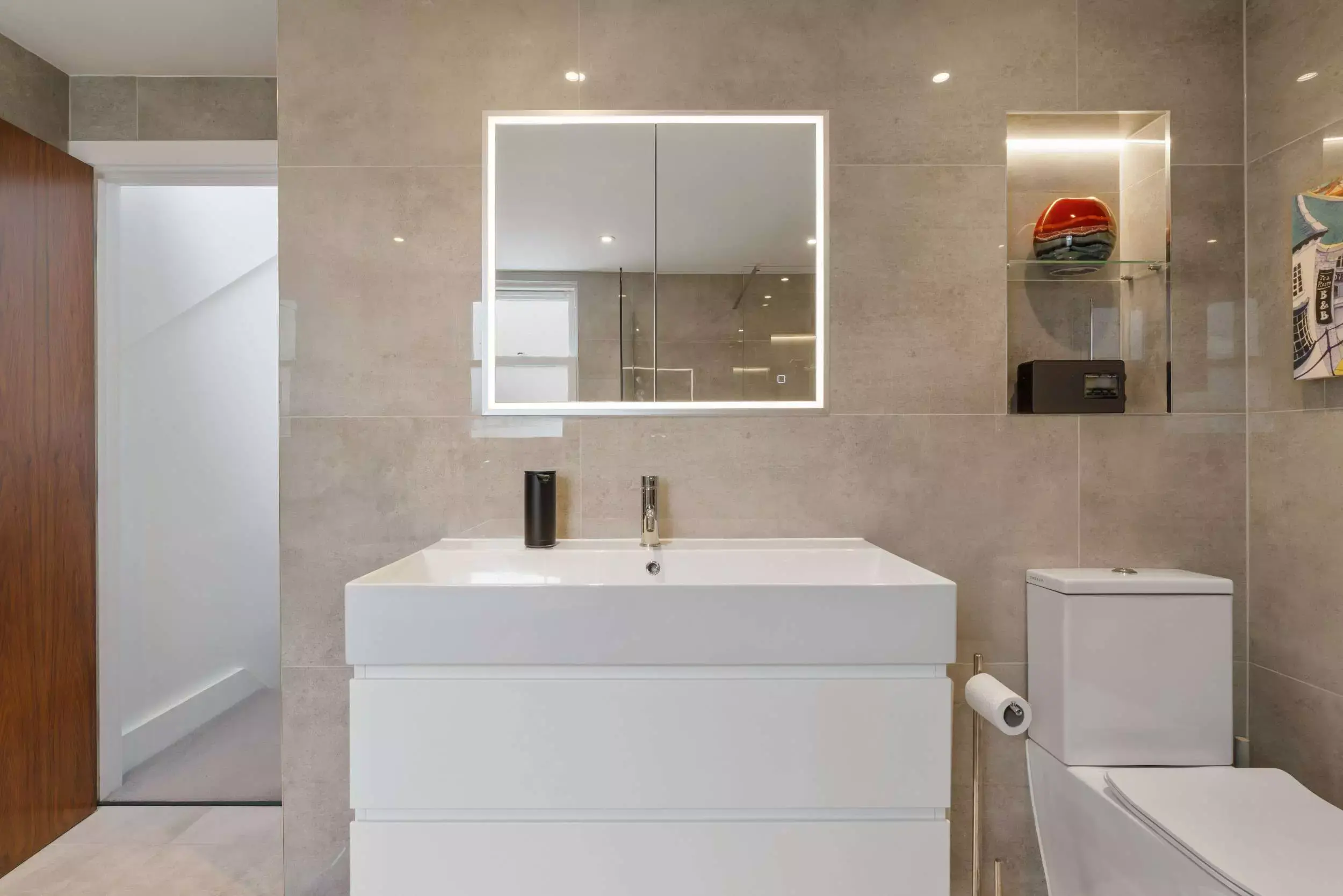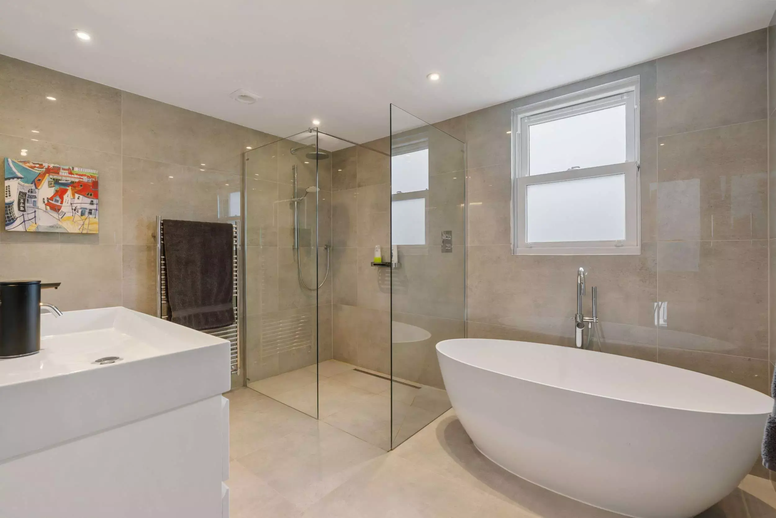 *Luxurious Dekton countertops *Glass art backsplash.